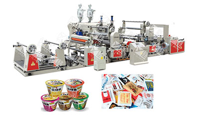 本系列設(shè)備以紙,塑膜,紡織布或鋁箔為基材,通過流延,一次復(fù)合成二層,三層(夾心復(fù)合),廣泛應(yīng)用于食品包裝,藥品包裝等各行業(yè)。如制作口杯,方便面碗,飼料包裝袋,醫(yī)用衛(wèi)材,快餐盒,無紡布袋。